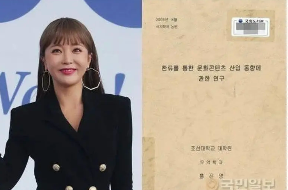 韩国女歌手洪真英近日被爆料硕士论文造假,被称【韩国翟天临】。