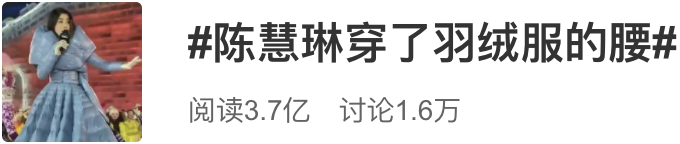 小飒记得陈慧琳上一次出现在热搜榜上中,还是在2020的跨年晚会上。零下32度的哈尔滨,上一秒还被冻到表情失控,可是音乐声一起,立刻切换天后模式,专业度满分!