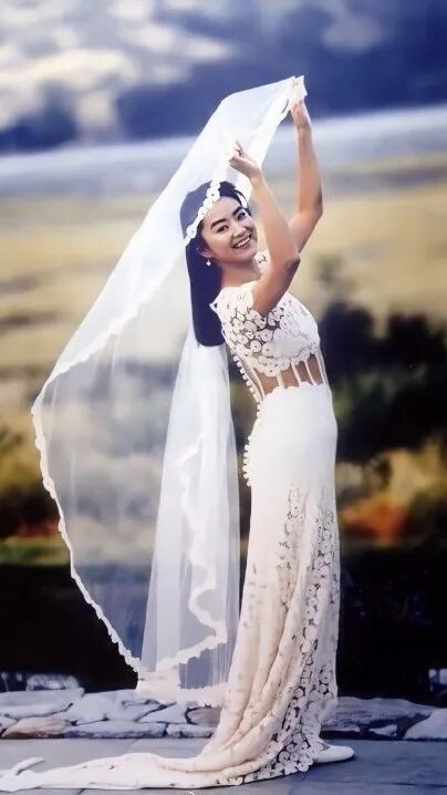 当年林青霞身着香奈儿1993年春夏高定系列礼服嫁给邢李原,笑颜如花。