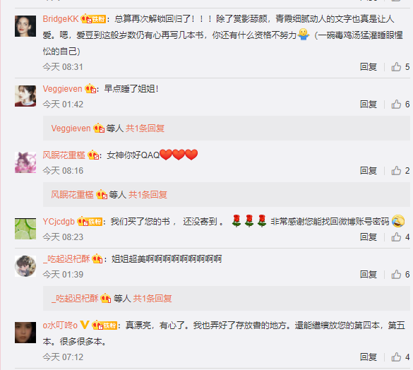 而这次回归发博,推销自己新书的做法虽然有很多网友表示支持,但仍有一些质疑的声音“还不是为了推销书”、“上一次回归微博是因为综艺节目,无事不登微博殿。”引发两级争议。