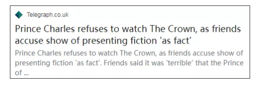 有趣的是,作为本季主线故事的“当事人”,英国王储查尔斯表示“拒绝”观看这一季,理由是他身边的朋友认为这部剧把虚构“当做事实”。而威廉王子据说也对剧集对自己的刻画有些“不太满意”,他觉得“自己的父母被利用,被通过一种虚假而简单的方式来赚钱”。秘辛被揭穿,各中滋味也就只有当事人知晓了。