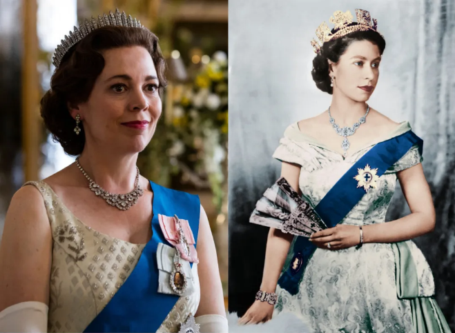 对于角色原型形象,《王冠》堪称教科书级别的还原水平。女皇当然不用说了,从王冠、绶带、礼服、珠宝,甚至皮肤的纹理,恐怕女皇自己看到都要吓一跳。