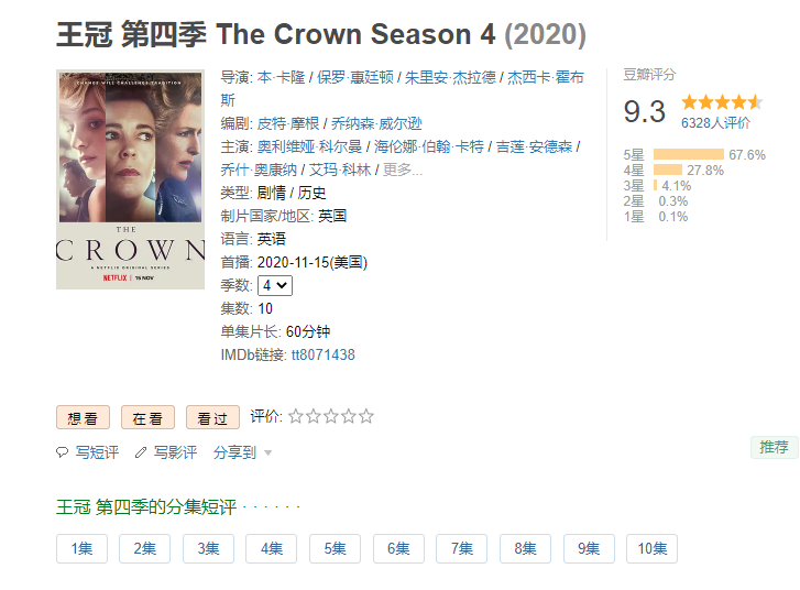 有细节、有伏笔,无论是服装道具还是演员的演绎都几近完美,怪不得《王冠》能得到9.3分!