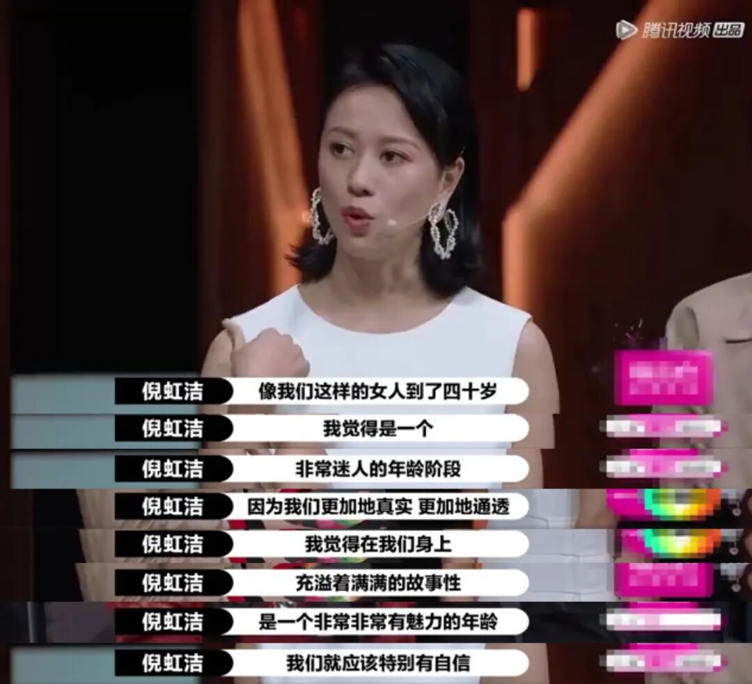 倪虹洁就《演员请就位》的舞台上就表示“四十岁是个非常迷人的年龄阶段,因为我们更加地真实,更加地通透。我觉得在我们身上充溢着满满的故事性,是一个非常非常有魅力的年龄,我们就应该特别自信。”