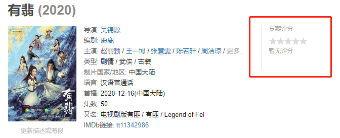 更何况今年播出的剧集本就不算多,武侠类的就更少了。原本以为在这样的环境下有翡可以大放异彩,万万没想到小飒打开豆瓣却发现这部剧至今都没有出评分