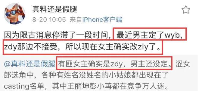 《有翡》这部剧从3年前买下版权决定要开拍之时,选角就一直饱受争议,从胡一天、朱一龙、金晨,到定了周冬雨,男主还没定;后来男主定了王一博,周冬雨那边不接受,所以女主角改成了赵丽颖......总之就当红的流量都被剧方溜了一个遍。