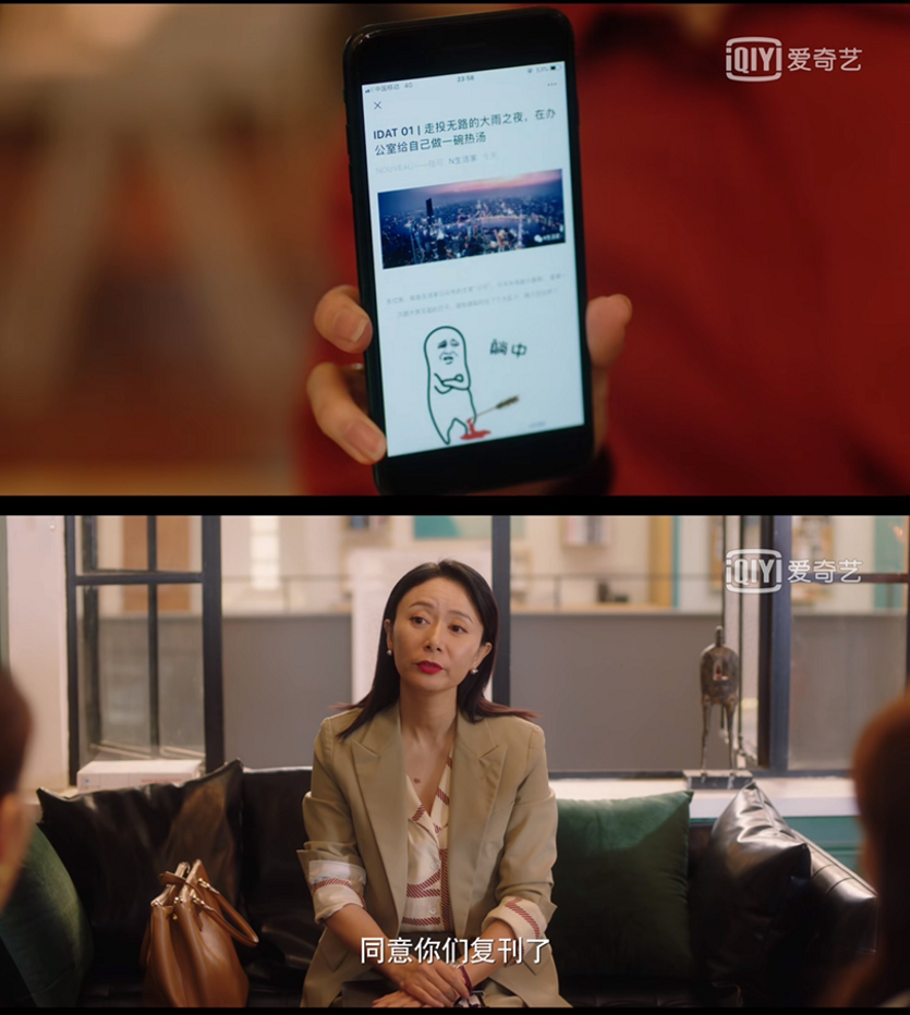 不过,故事一发展就是国产职场剧熟悉的离谱味道。高中时期绝交的前情在剧中被一笔带过,俩人成为同事后自然会有不别扭。一个是空降女强人,一个是职场傻白甜,幸亏有共同的目标,俩人在拯救杂志社的志向上达成共识,寄希望通过新方案让总部改变决策。嫌隙就这么消除了。