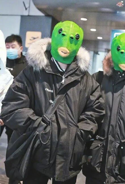sky天空少年团李希侃、郭震、左叶戴着绿头鱼头套现身机场,哈哈哈哈哈这个男团怕不是全员喜剧人吧。