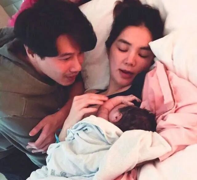 劲宝出生后,老公激动地亲吻她说:“谢谢”。Ella也泪崩:“我差点要放弃了”。夫妻俩一起为劲宝剪断了脐带。