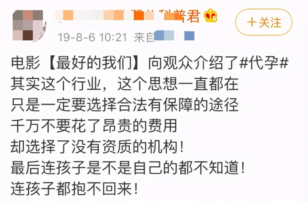 针对该作品中的代孕行为,@人民法院报 发文提醒:别以身试法!实施代孕技术或可构成犯罪。