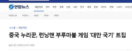 韩联社:中国网友就《Running Man》中“Blue Marble”游戏(环节)出现“台湾国旗”找茬