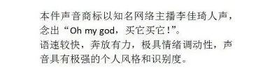 李佳琦申请注册的声音商标“Oh my god,买它买它!”,被驳回了。