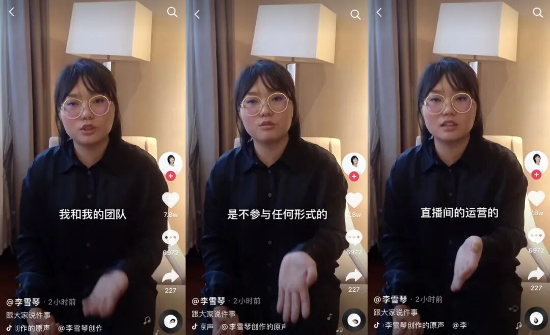 李雪琴称“造假的事不会干”,以后会更严格要求自己。