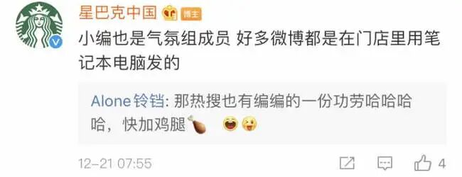 之后,它还在评论区里“坦白”:小编也是气氛组成员,好多微博都是在门店里用笔记本电脑发的!