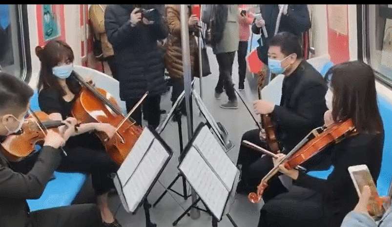 真没想到,有一天能在地铁上聆听现场弦乐四重奏!