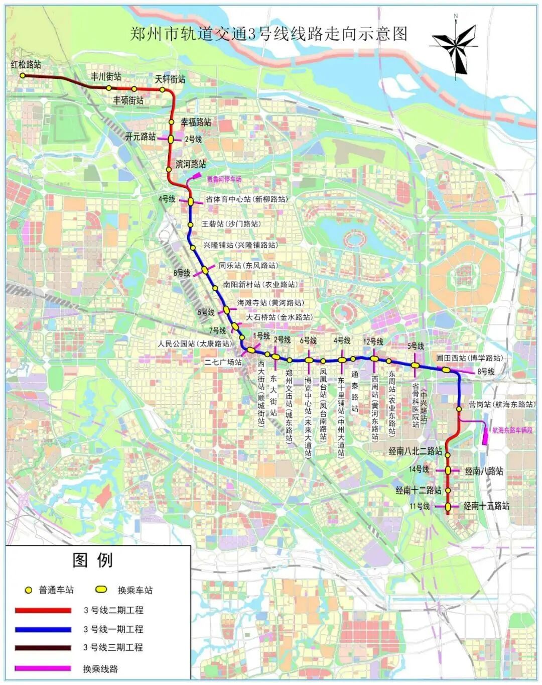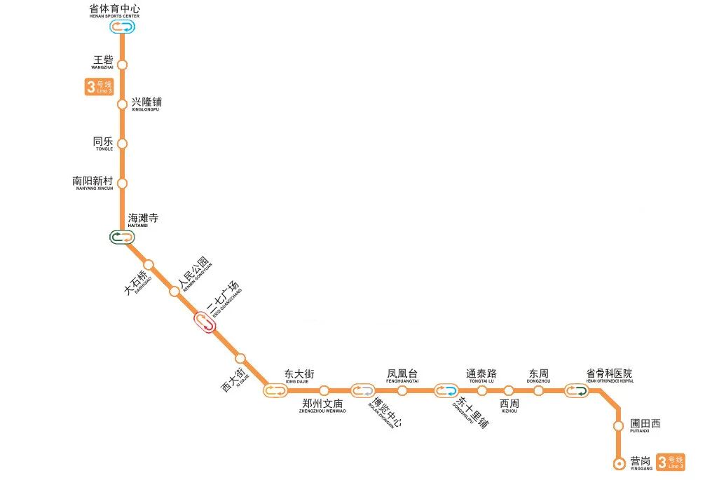 3号线一期,线路北起于惠济片区的省体育中心站,沿长兴路、南阳路、解放路、东大街、商都路、经开第十七大街等道路走行。