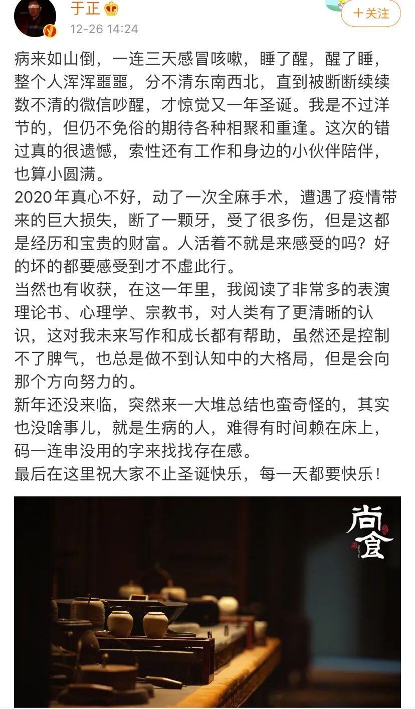 于正依然在发微博,但只是一些抒发胸臆的小作文。