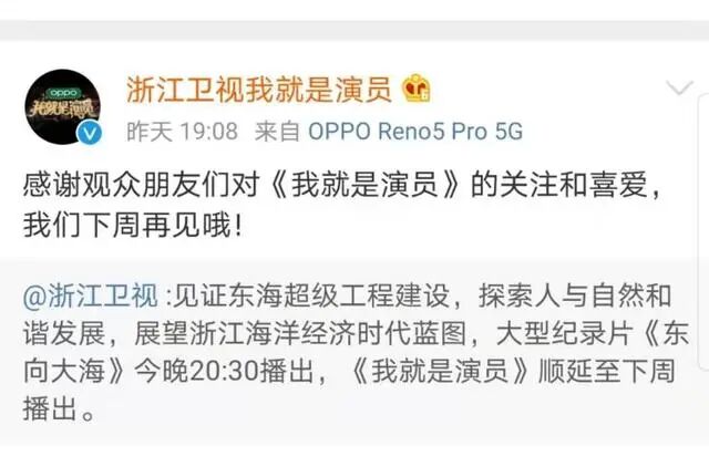 现在,《我就是演员3》作为一档周播节目,毫无征兆宣布延播,是临时改播其他节目,还是另有隐情?