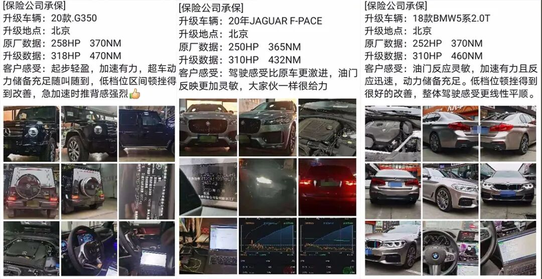 还有捷豹F-PACE、奔驰G、奥迪A4\A5、宝马5系等,ECU优化后,都有着明显的动力提升和驾驶改善。