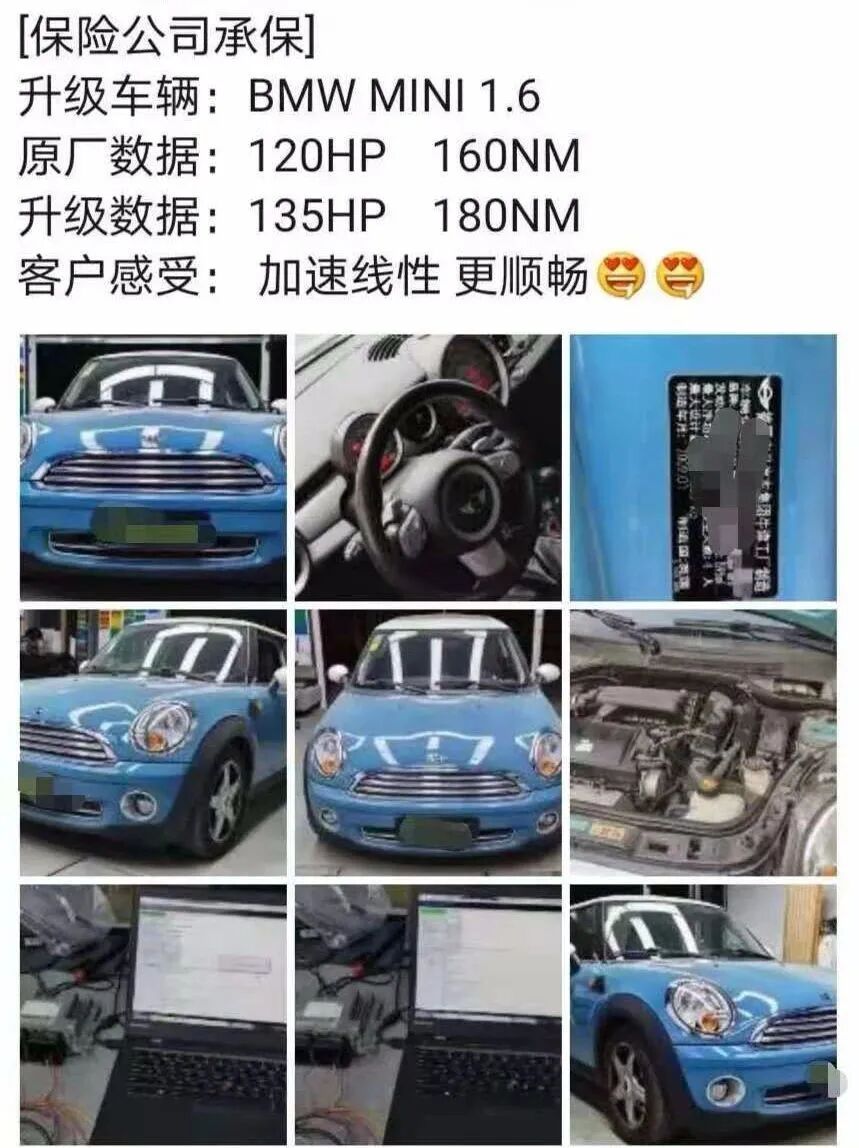 1.6的宝马MINI,原厂数据120HP,160NM,优化后,最大功率提升至135HP,最大扭矩增加到180NM,开起来加速更顺畅。