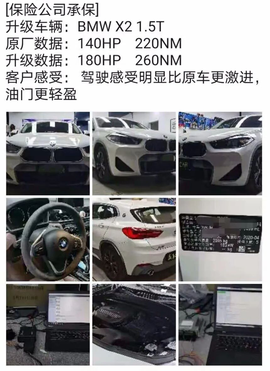 比如,1.5T的宝马X2,它的原厂数据是140HP,220NM;优化后,最大功率达到180HP,最大扭矩达到260NM,而且常用转速段的动力提升明显,比原车更有劲,超车更轻盈,连换挡顿挫和震动都减小了。