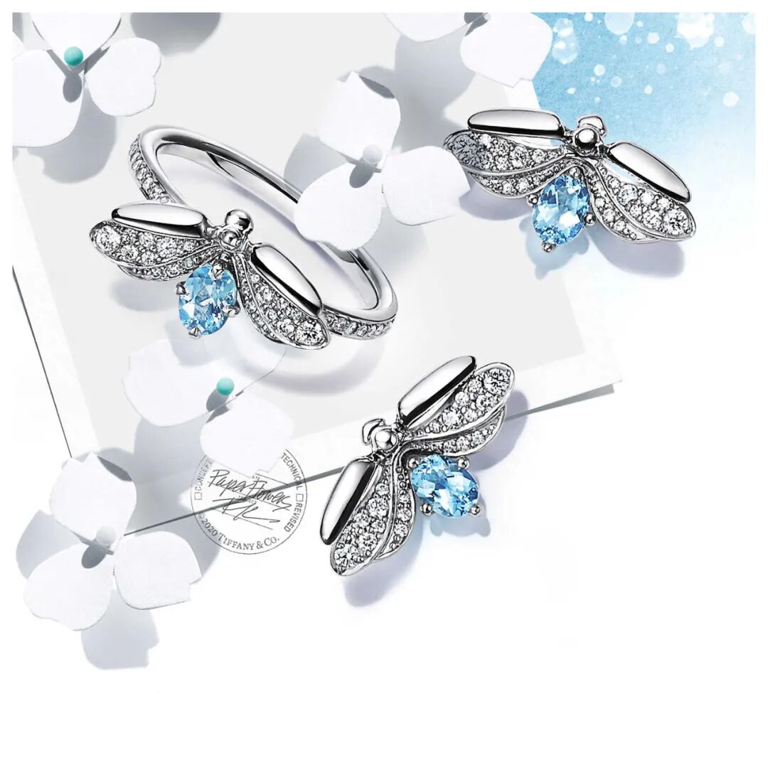 如果你更追求设计感的话,不妨尝试带有自然元素的款式。这款蒂芙尼花韵系列珠宝以萤火虫为灵感,由钻石和海蓝宝打造而成,萦绕着明显的亲近自然之风,让人感受到了勃勃的生机。