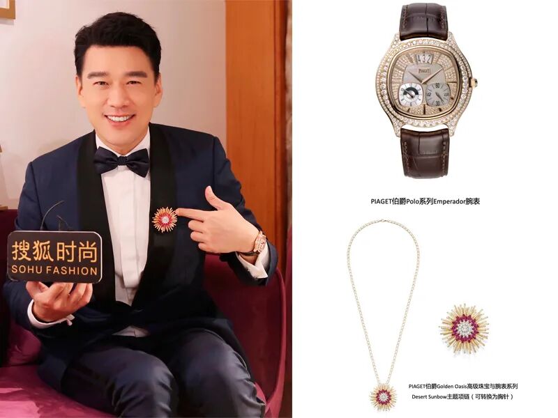 搜狐时尚:你今天这身造型和伯爵珠宝有什么关系吗,同时今天佩戴的这款腕表有什么感觉?王耀庆:我今天手上戴的这只,大家如果仔细看的话,他是一个伯爵的Polo系列腕表,是从原来的马球运动中延伸而来的,它的形状可以说的上是“形中有型”,意思就是外面可能是方形的造型,但是里面底下有秒针,还是一个外框的造型,上面有日历的展现。在表盘上面展现的,是伯爵引以自豪的满天星镶嵌工艺,所以搭配这次的蓝色礼服还是非常好看的。同时,这次还佩戴了一枚两用的胸针,它还可以当成一个吊坠,因此是除了好看之外还具有多种实用功能。