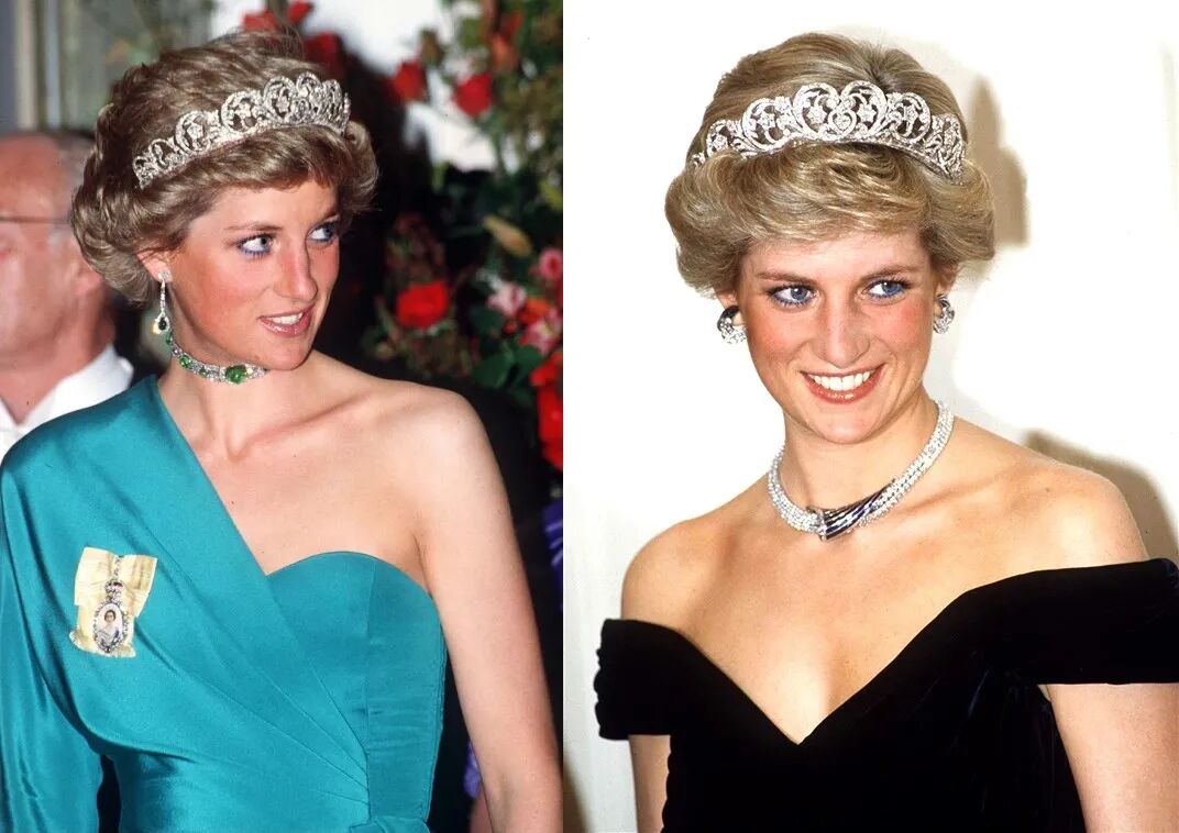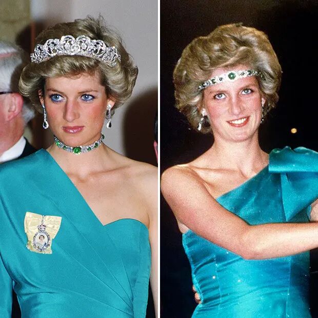在1985年的澳大利亚皇家巡回演出中,戴安娜将一条Art Deco风格祖母绿和天然钻石项圈作为前额装饰,这种风格引起了轩然大波,并在全世界成为头条新闻。