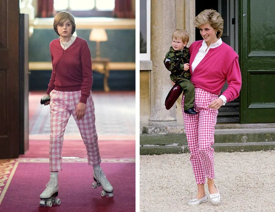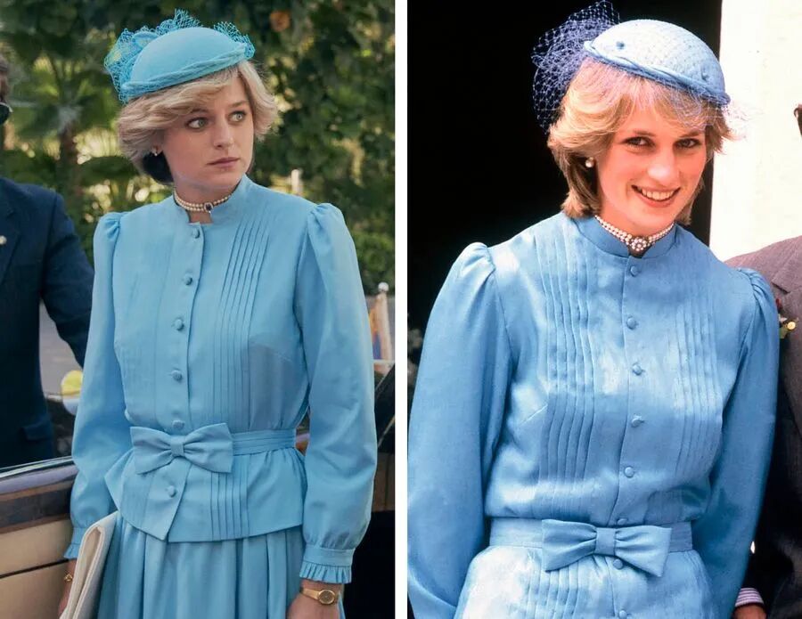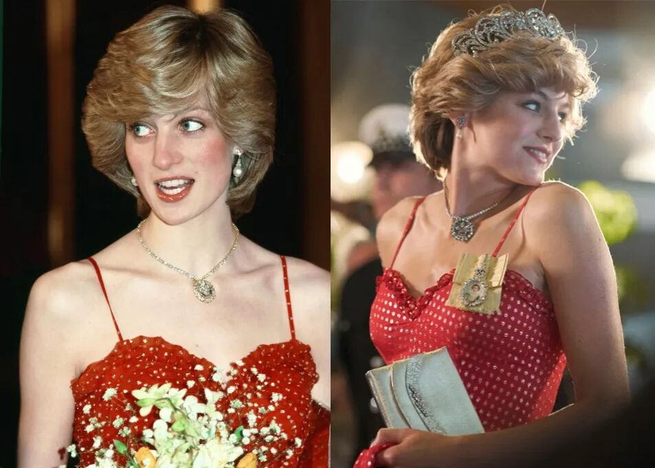 在澳洲的访问时,科林在剧中身穿一条充满俏皮少女气息的红色波点吊带长裙的造型也十分惊艳。不过戴安娜当年在澳洲穿的是另一条红色长裙,而剧中其实借鉴了戴安娜在1981年参加《只为您的眼睛》首映式时候的形象,颈间的一条天然钻石项链也被保留了下来。