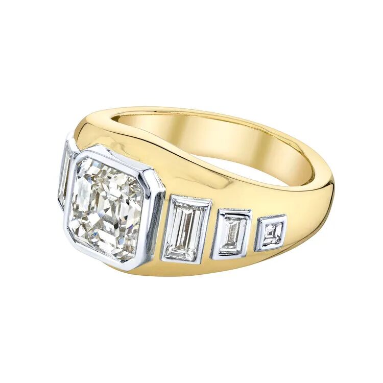Anna Sheffield 天然钻石戒指East-West设计风格可以完美地展现天然钻石的几何形状,对经典宝石进行现代化诠释。这种类型的钻戒在一定程度上能修饰手型,如果你想要增加一些时尚感的话,还可以将它和结婚对戒或其他戒指搭配着一起佩戴。