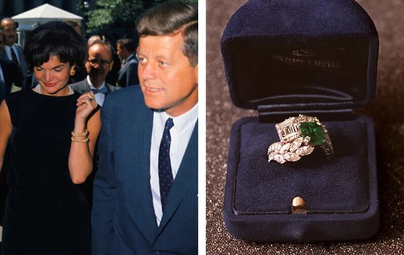 而在1953年,另一位时尚界偶像杰奎琳·肯尼迪·欧纳西斯 (Jacqueline Kennedy Onassis) ,与约翰·F·肯尼迪 (John F. Kennedy) 结婚时,也是同样颠覆常规,佩戴镶有祖母绿和天然钻石的 Toi et Moi款式的戒指。这种设计风格在19世纪末至20世纪初成为一种潮流。