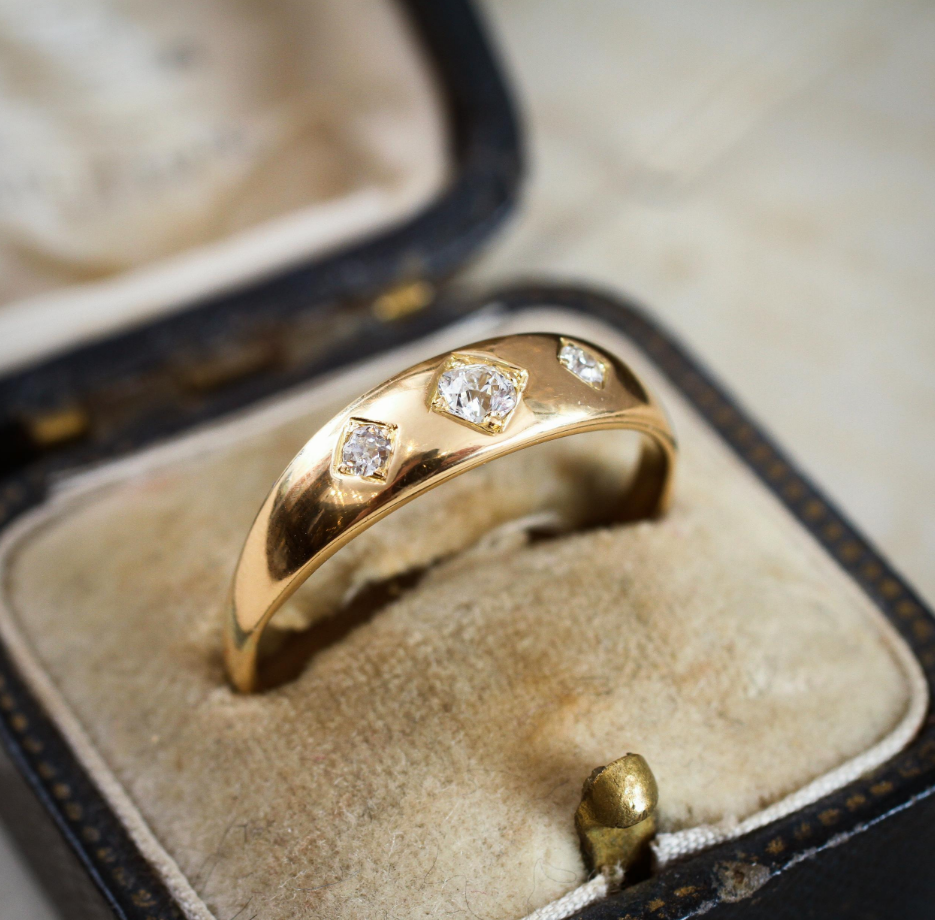 维多利亚时期的吉普赛风格天然钻石戒指吉普赛风格的天然钻石戒指曾在维多利亚时代风靡一时。当时,人们将这种象征着爱情和友谊的戒指作为礼物赠送,不论男性还是女性都可以佩戴,如今又重新流行起来。