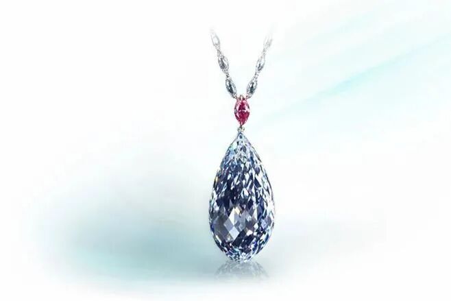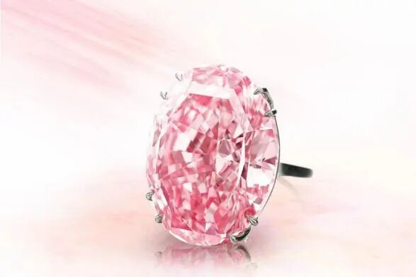 "粉红之星”天然钻石“粉红之星”由戴比尔斯 (De Beers) 于1999年在南非发现,原石重132.5克拉,切割后重59.6克拉,被GIA评级为粉钻中最高级别Fancy Vivid Pink。除了无暇IF的净度,在成分方面也是钻石中最纯净的TypeⅡa类型,世所罕见。2017年4月4日,这颗“粉红之星”被香港珠宝商周大福以7100万美元巨资拍下,刷新了当时全球宝石拍卖新纪录。周大福随后更其名为“CTF Pink”——周大福粉钻,成为另一枚中国买家收藏的传奇巨钻。