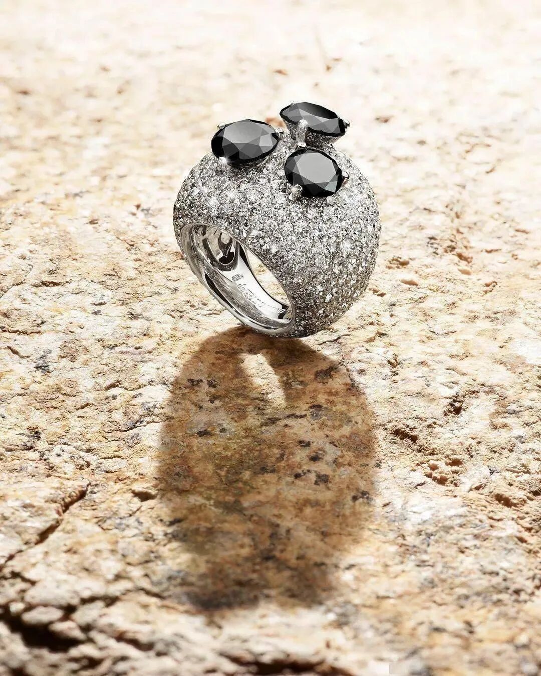 此外,通常呈现完全不透明状态的天然黑色钻石,因为其光泽度高,看上去很像金属的特性,如果运用得当的话,其实是能创造出非常炫酷的珠宝。比如前面提到过的品牌de Grisogono,就非常擅长使用天然黑钻制作奢华珠宝,并因此声名鹊起,以至于曾被大家称为“黑钻之王”。