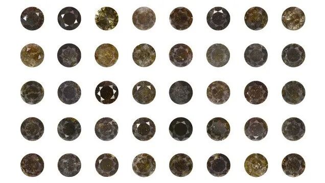 由于这些不透明的深色内含物有时分布不均匀,所以会有呈现黑色、深褐色、深灰色的等颜色。与粉红色、黄色或蓝色天然钻石不一样的是,天然黑钻的色调和色度却并无变化,因此,全球权威的钻石鉴定机构GIA仅使用一个分级术语描述它:彩黑(Fancy Black)。