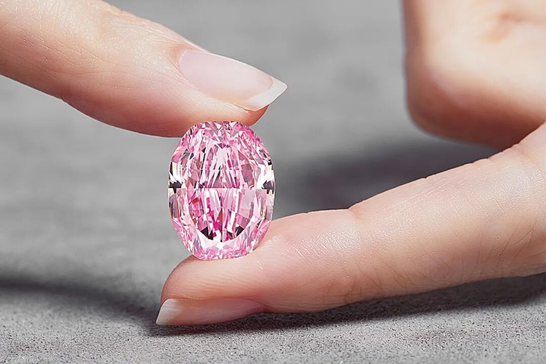 The Bubble Gum Pink 粉钻戒指其实粉钻已经不是第一次拍出如此高的天价了,历年来还有很多天然粉钻频频刷新纪录。比如2019 年5月佳士得香港以5882.5万港币拍出一枚3.44克拉Fancy Vivid艳彩紫粉色钻石,刷新了当时粉钻的单克拉价记录。