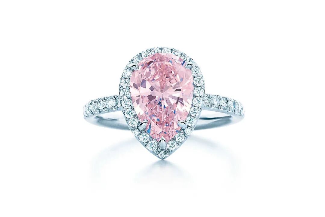 Tiffany&Co.蒂芙尼天然浓彩粉色钻戒如果你对颜色不那么挑剔的话,可以尝试Fancy(彩)或者 Fancy Intense(浓彩)等级的天然粉钻,它们在肉眼看来也十分迷人。