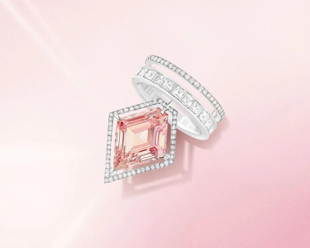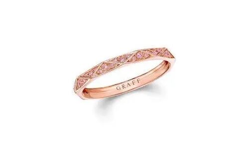 Graff格拉夫戒指,镶嵌天然粉色钻石除此之外,大家还可以选择这种镶嵌天然粉钻的戒环,一方面造型比较独特,另一方面价格也会实惠很多。