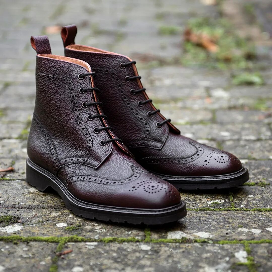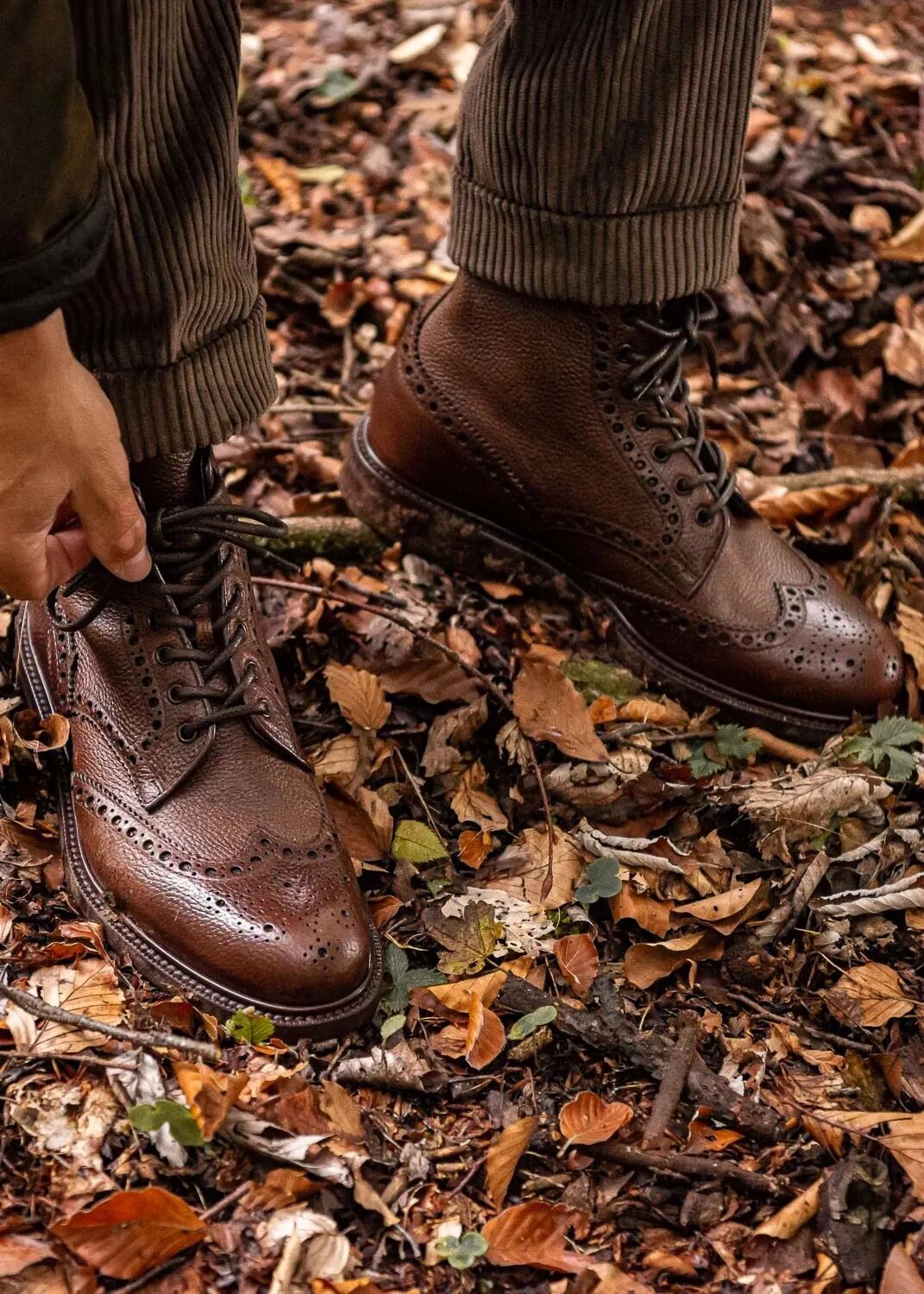 Grenson 的布洛克靴在品牌这里叫做 Fred,比较特别的一点是,它的花纹雕孔要比普通的款式更加粗大,乡鞋风格突出,看起来要粗旷许多。