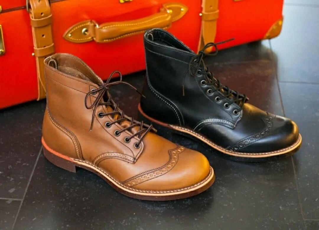 相对之下,像 Red Wing 这些品牌直接在工装靴型上雕刻上布洛克花纹,而不改变楦型,无疑会显得有点“另类效颦”,风格感觉不是那么自然。