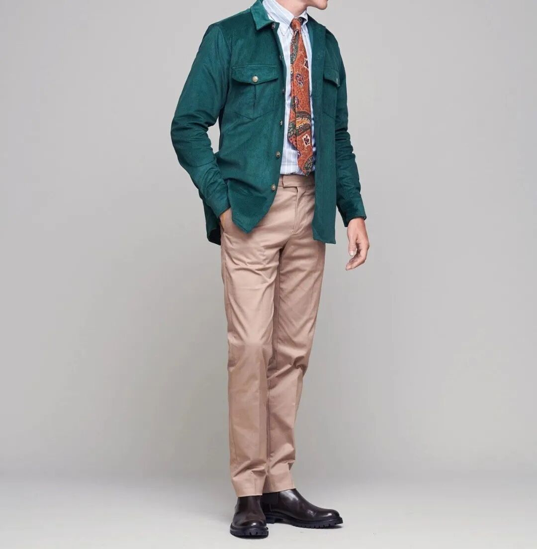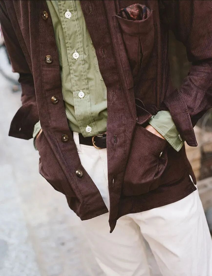 真正意义上的外套式衬衫通常面料稍厚实,版型挺括,外观线条跟轮廓会比普通衬衫更加分明,甚至会带点结构。