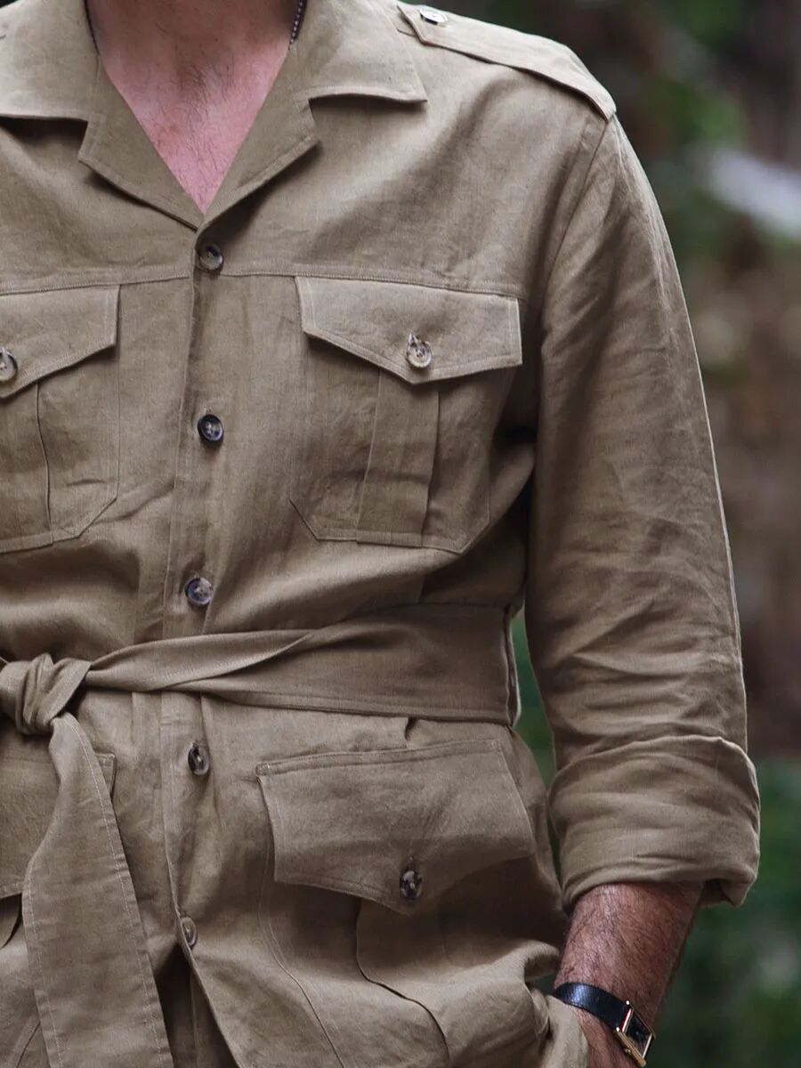 而上世纪一度成为绅士们户外出行首选的 Safari Shirt,则凭借卡其布耐穿耐折腾的出色表现,成功从军界打入日常衣橱。