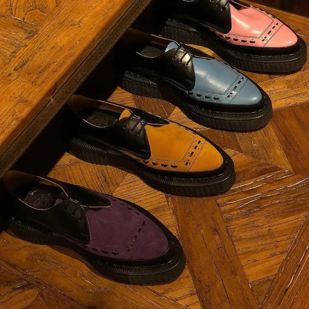 需要注意的是,Brothel Creeper 并不是由 George Cox 创造的,该鞋款出现的时间会更早,不过,George Cox 是第一个正式生产该鞋款的品牌,将其带入到了大众层面,而品牌自己也凭借着 Brothel Creeper 获得了市场的认知。