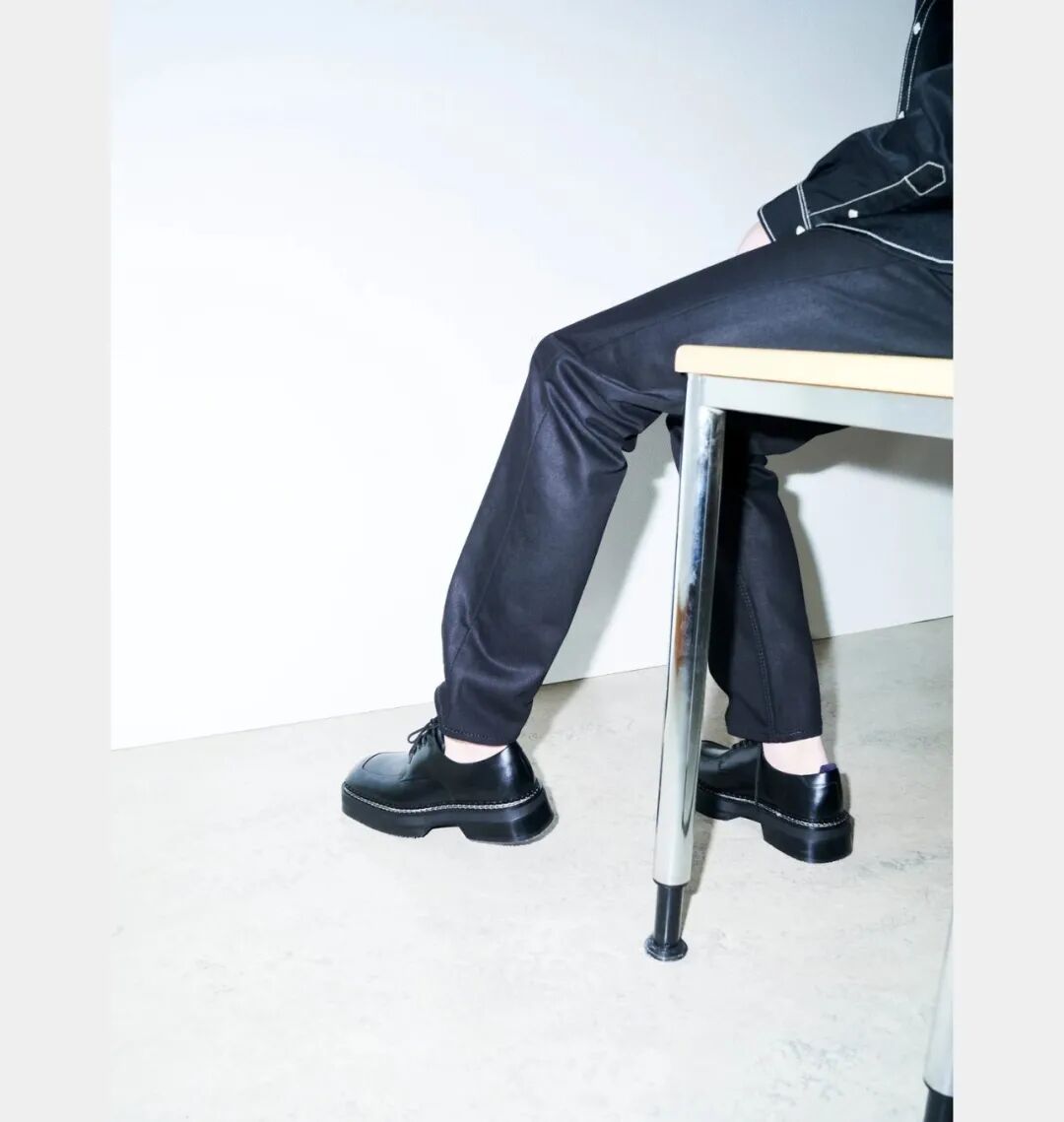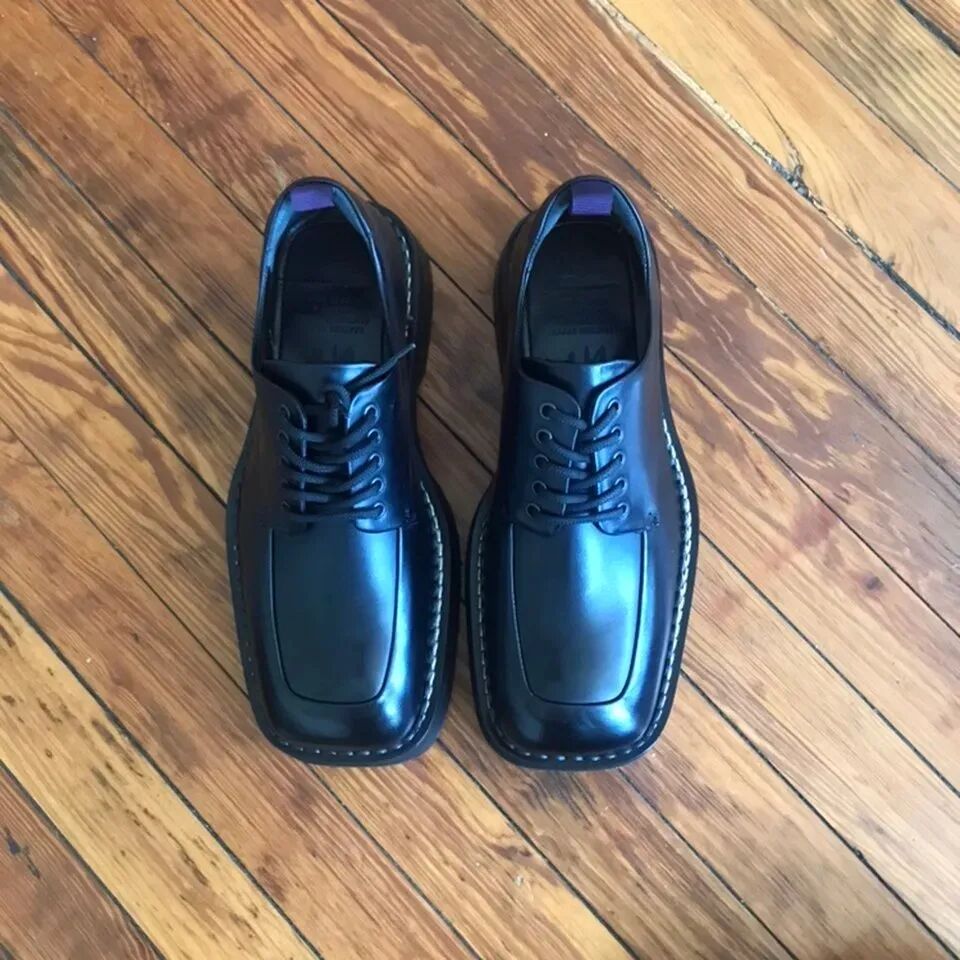 相对于 Martine Rose 的方头乐福,这双 Phoenix Derby 其实会更加好穿一些,厚厚的鞋底也能与方头相平衡,没有恍然突兀的异类感,同时也不像其他方头皮鞋那样扁平,立体感更强,有着复古也硬朗的特质。