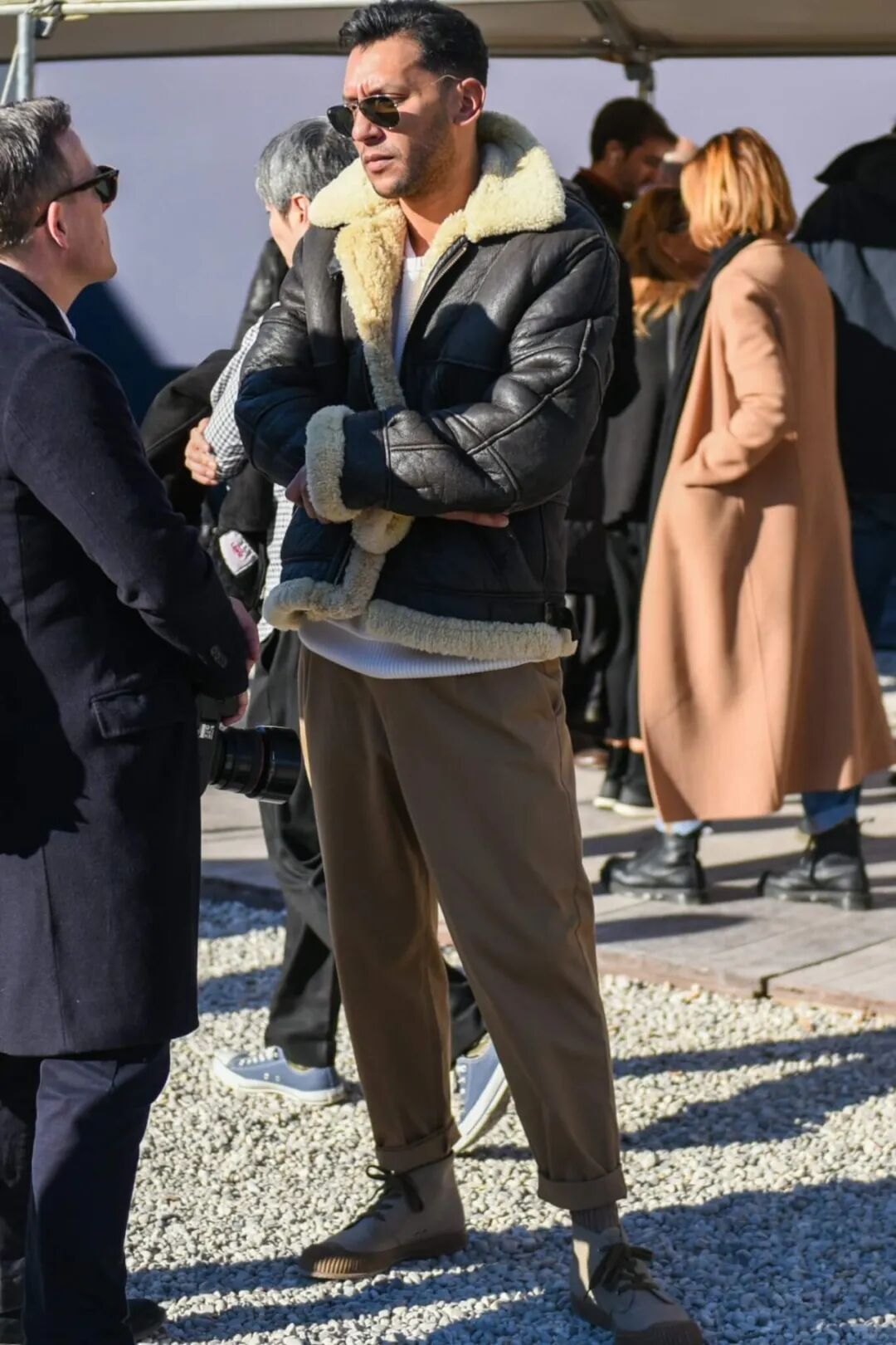 相对内搭,实际上穿好皮毛一体的关键在男人的下半身。