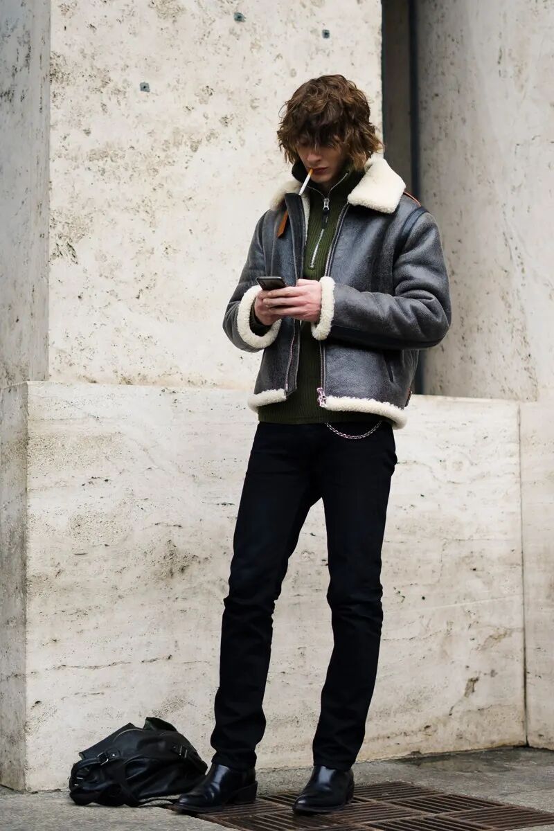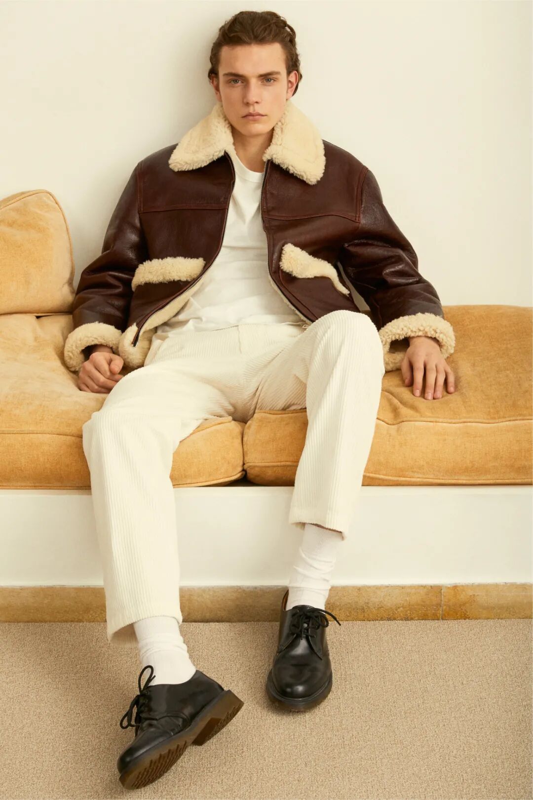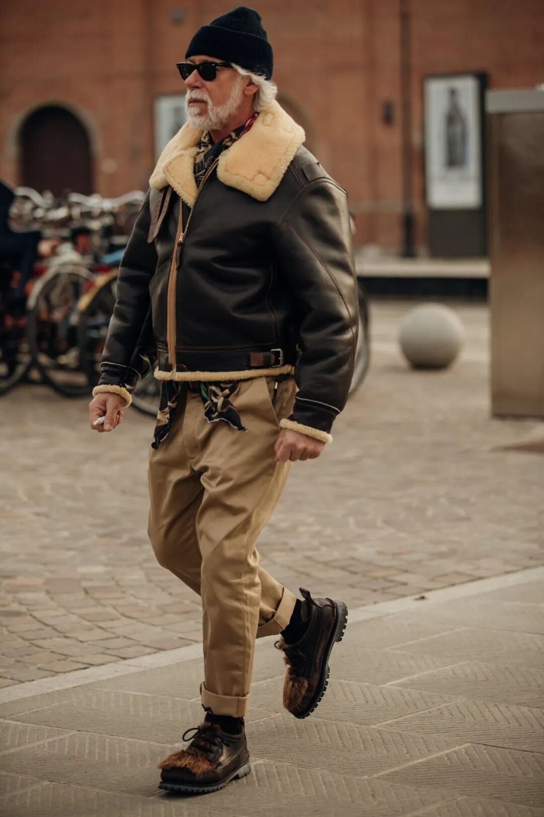 有绒毛内衬,翻毛领,翻毛袖口和下边,它们也有个专属名字叫做 Sheepskin Jacket,大体上指的都是这一类“有皮有毛”的夹克。
