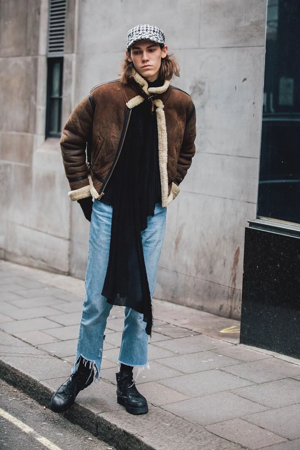 牛仔裤 的话,穿在皮毛一体下面,整体型格则会变得更为硬朗有余,特别是慢慢变旧的皮革材质,还会有充足的复古氛围。