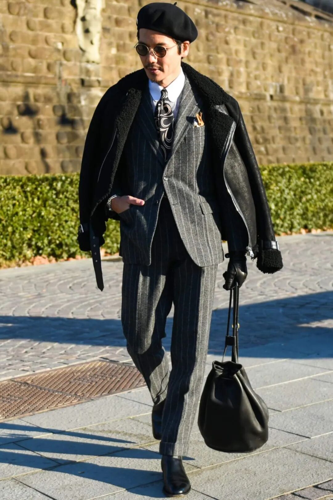 早在前阵子西装+外套的文章中,叶子就已经介绍到,现在不少绅士也会在西装外面再套上一件皮毛外套,不单提升了气势范围,还能在奢华精致当中透露出几分暖萌感来,非常别致。