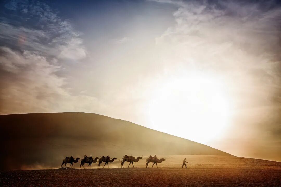 ▲河西走廊沙漠驼队 图源/摄图网。