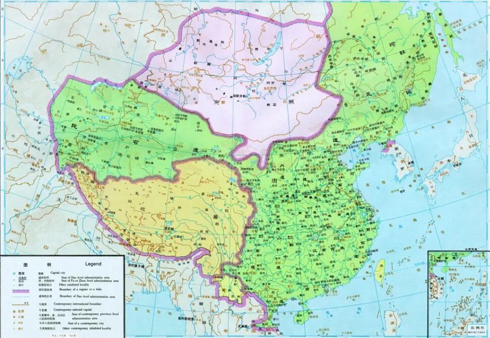 ▲唐朝疆域图(开元二十九年) 图源/中国历史地图集